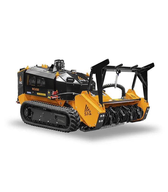 FAE's RCU series has been developed to deliver maximum productivity with total safety, even in the harshest environments. These remote-controlled tracked carriers are ideal for forestry work, land clearing, infrastructure maintenance and operations in sloping or hard-to-reach areas, allowing the operator to work remotely with full control.