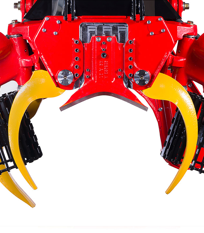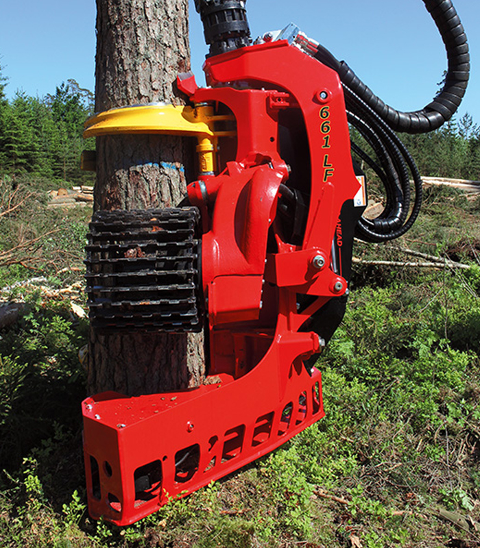 Los rodillos de alimentación de ángulo proporcional garantizan que el ángulo y la capacidad de carga de los rodillos de alimentación cambien proporcionalmente en función del diámetro del eje. Cuando los rodillos de alimentación están completamente abiertos para procesar un tronco de diámetro muy grande, los rodillos de alimentación se ajustan a su ángulo más amplio y, por lo tanto, proporcionan la máxima capacidad de carga al tronco. Esto significa que la presión de sujeción en las sierras de podar se puede minimizar, reduciendo la fricción y permitiendo que el cabezal de tala alimente el árbol de forma rápida y sencilla. Cuando los rodillos de alimentación están cerrados, esta solución única proporciona un cabezal increíblemente estrecho y ágil con dimensiones compactas.