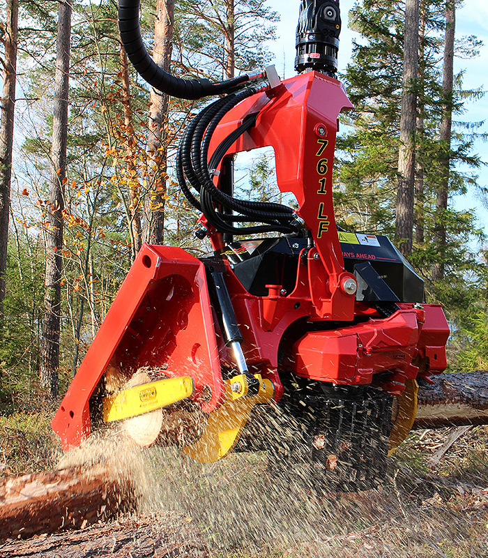 Los rodillos de alimentación de ángulo proporcional garantizan que el ángulo y la capacidad de carga de los rodillos de alimentación cambien proporcionalmente en función del diámetro del eje. Cuando los rodillos de alimentación están completamente abiertos para procesar un tronco de diámetro muy grande, los rodillos de alimentación se ajustan a su ángulo más amplio y, por lo tanto, proporcionan la máxima capacidad de carga al tronco. Esto significa que la presión de sujeción en las sierras de podar se puede minimizar, reduciendo la fricción y permitiendo que el cabezal de tala alimente el árbol de forma rápida y sencilla. Cuando los rodillos de alimentación están cerrados, esta solución única proporciona un cabezal increíblemente estrecho y ágil con dimensiones compactas.